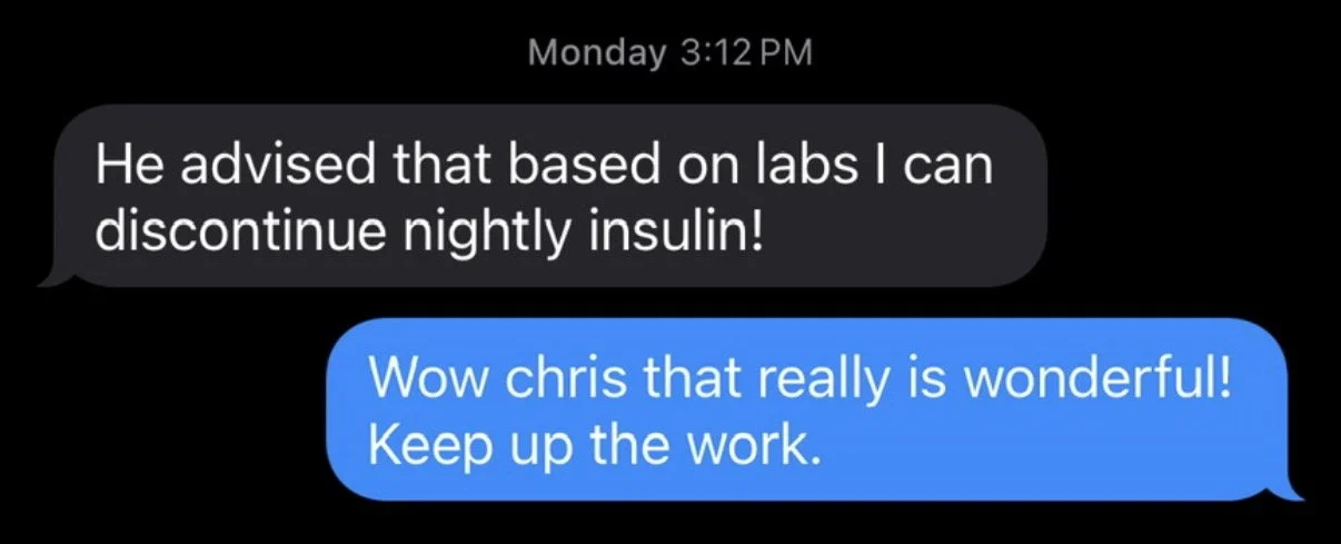 Chris has lost over 30 pounds, discontinued nightly insulin, and built lasting confidence through structured training and nutrition. Along the way, he’s developed a strong understanding of the gym, proper form, and how to sustain his results long-term.